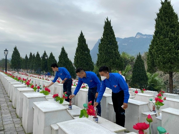 Ảnh: Thắp hương tri ân các Anh hùng Liệt sỹ tại nghĩa trang Vị Xuyên