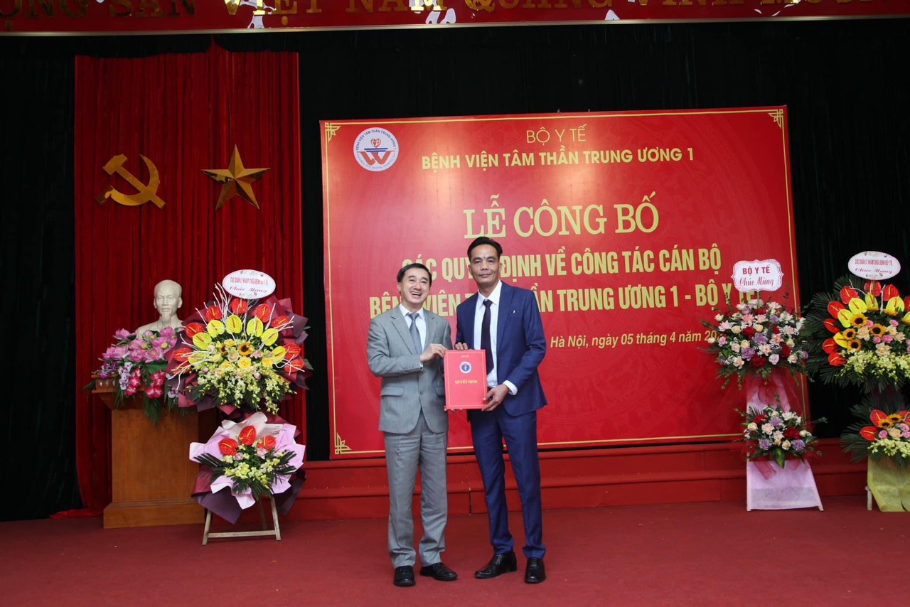 Tại đây, Thứ trưởng Bộ Y tế GS.TS. Trần Văn Thuấn đã trao quyết định giao quyền phụ trách quản lý điều hành Bệnh viện Tâm thần Trung ương 1 cho Ts.Bs. Nguyễn Mạnh Phát – Phó Giám đốc bệnh viện, kể từ ngày 1-4 cho đến khi có quyết định bổ nhiệm Giám đốc Bệnh viện.