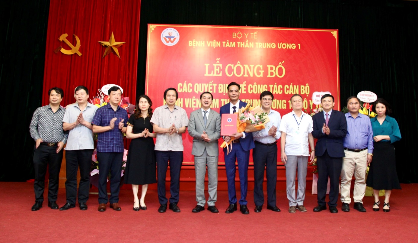 Ngày 05/4/2023, Bộ Y tế công bố các quyết định về công tác cán bộ tại Bệnh viện Tâm thần Trung ương 1. Tham dự buổi lễ, có GS.TS. Trần Văn Thuấn – Uỷ viên Ban Cán Sự Đảng, Thứ trưởng Bộ Y tế; PGS.TS. Nguyễn Tuấn Hưng – Phó Vụ Trưởng Vụ Tổ chức cán bộ; Ths. Nguyễn Đình Anh – Phó Vụ Trưởng Vụ Tổ chức cán bộ; TS. Cao Hưng Thái – Phó Cục Trưởng Cục Quản lý khám chữa bệnh; đại diện lãnh đạo và chuyên viên một số Vụ, Cục, Văn phòng Bộ Y tế; cùng toàn thể Ban Giám đốc; Lãnh đạo và nhân viên các khoa/ phòng/ đơn vị thuộc Bệnh viện Tâm thần Trung ương I.