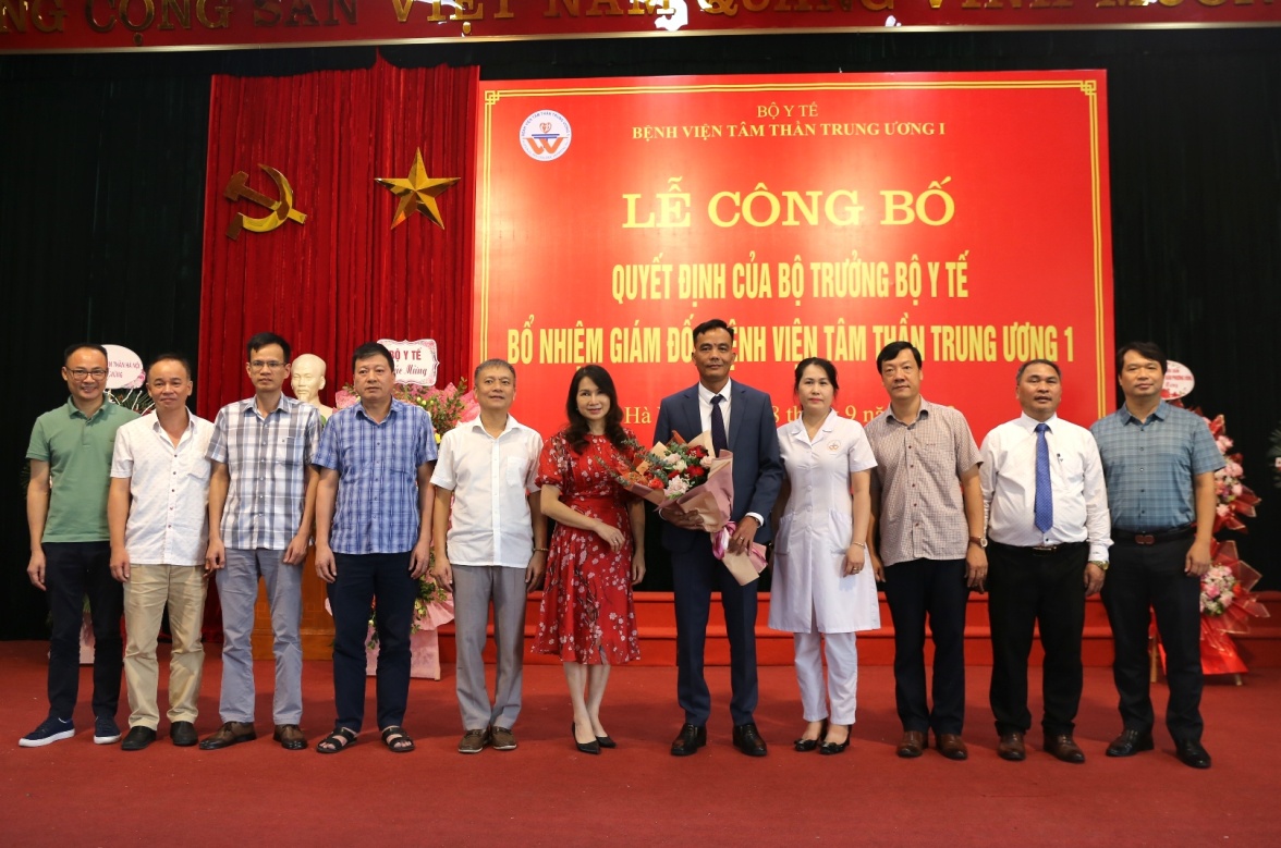 Ảnh: Tập thể Đảng ủy Bệnh viện Tâm thần Trung ương 1 chúc mừng Đ/C tân giám đốc