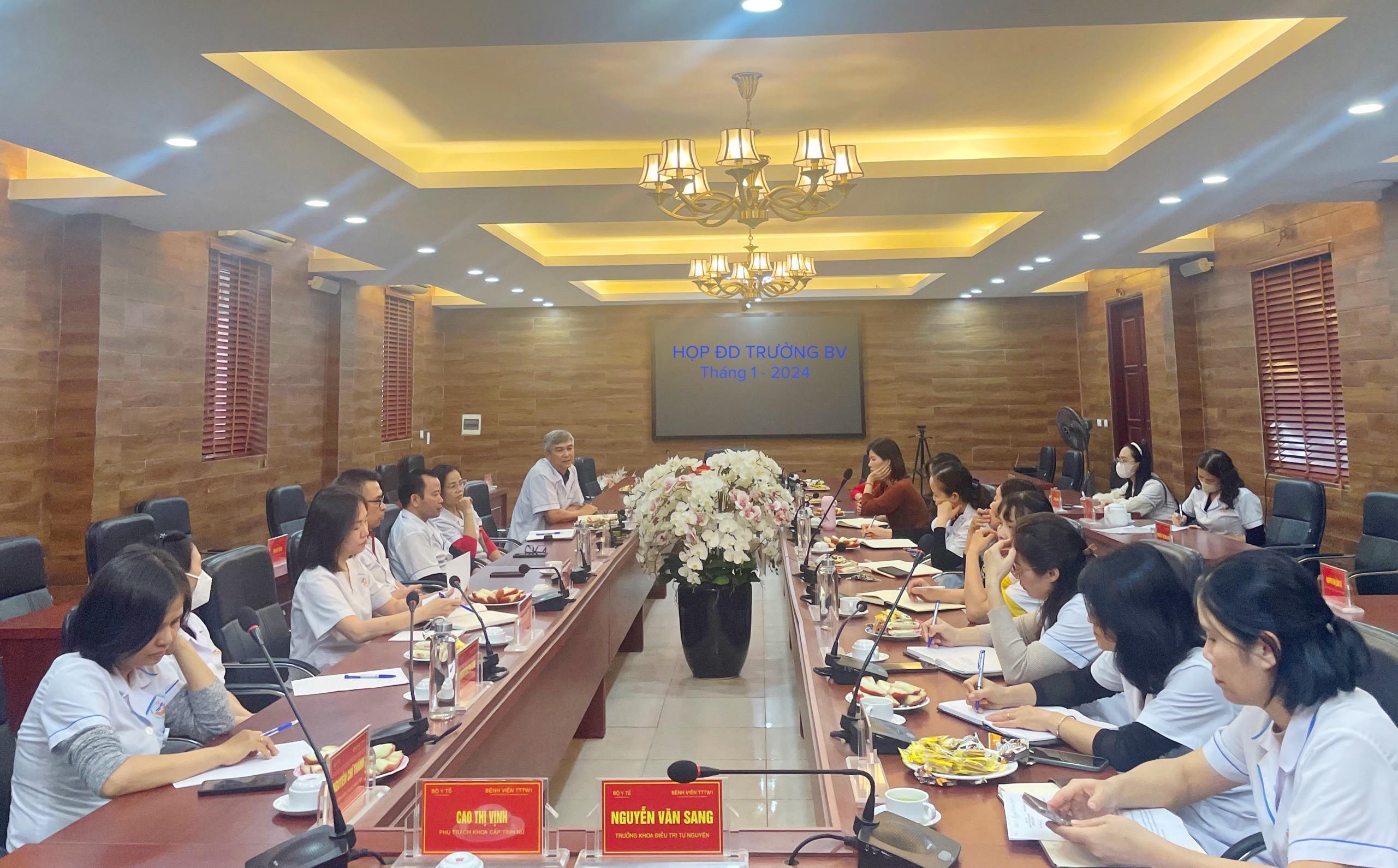 Thực hiện Kế hoạch của bệnh viện, ngày 18/1/2024, Phòng Điều dưỡng đã tổ chức họp Điều dưỡng trưởng. Trong cuộc họp đ/c Mai Huy Thông báo cáo công tác điều dưỡng tháng 1/2024 và đưa ra phương hướng hoạt động trong tháng 2/2024. Trọng tâm cuộc họp đ/c Mai Huy Thông nhấn mạnh mục tiêu của Kế hoạch Bệnh viện nhằm “đảm bảo người bệnh ở lại bệnh viện được đón tết đầy đủ, an toàn, đầm ấm”. Để thực hiện được mục tiêu, đội ngũ điều dưỡng phải đảm bảo tốt công tác thường trực tại các vị trí trực lâm sàng, cận lâm sàng; tăng cường công tác an toàn cho người bệnh; đảm bảo vệ sinh an toàn thực phẩm; đảm bảo an toàn không để xảy ra tai biến trong quá trình chăm sóc, quản lý người bệnh; tổ chức vui chơi trong dịp tết cho người bệnh một cách khoa học.
