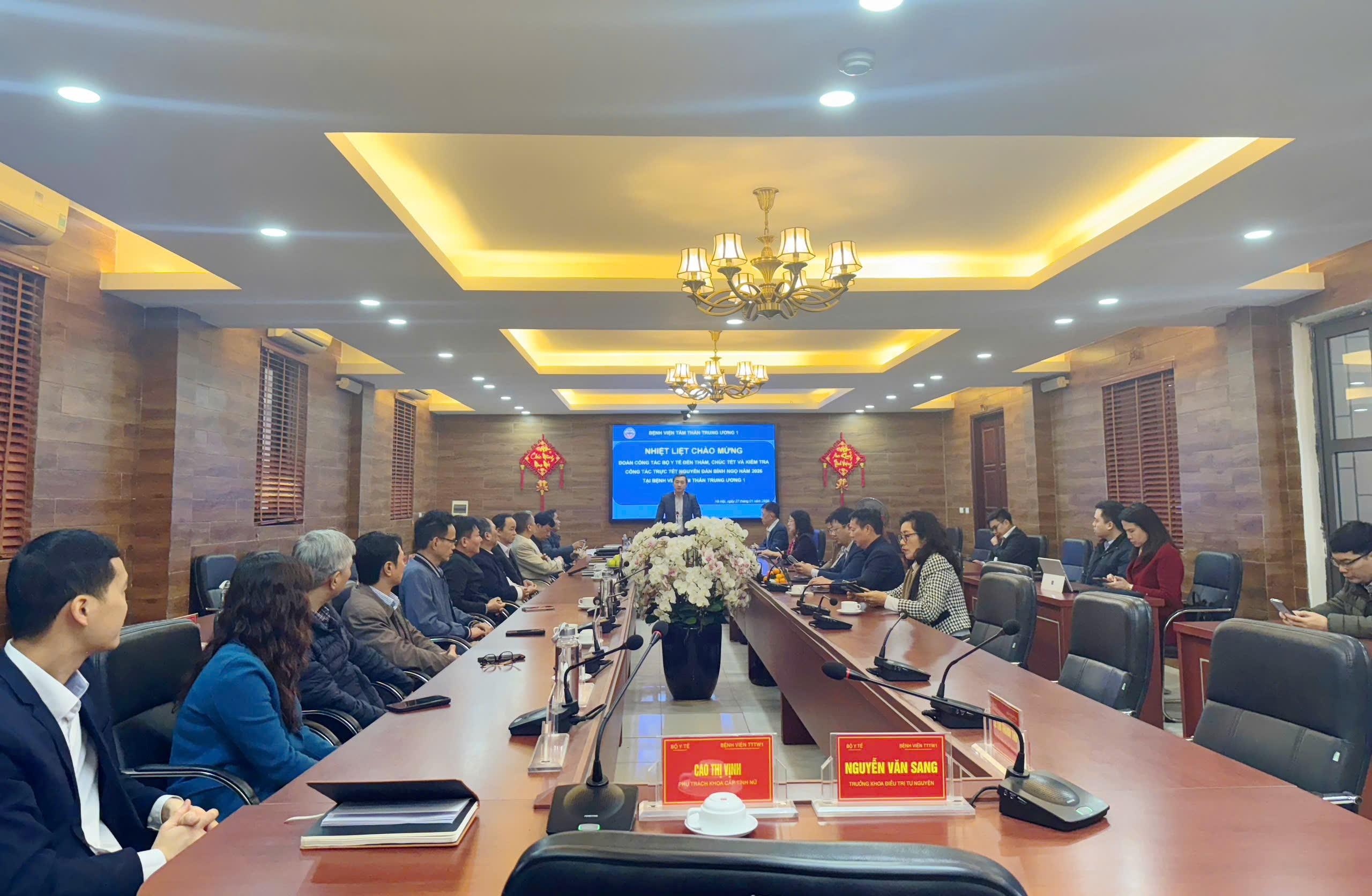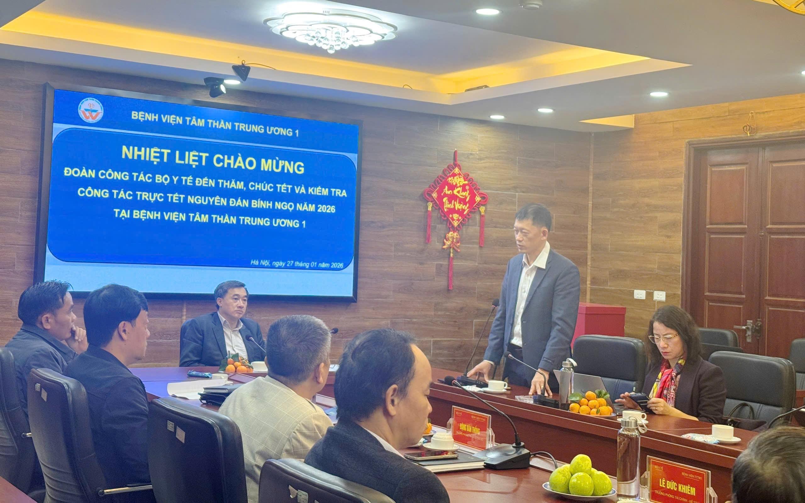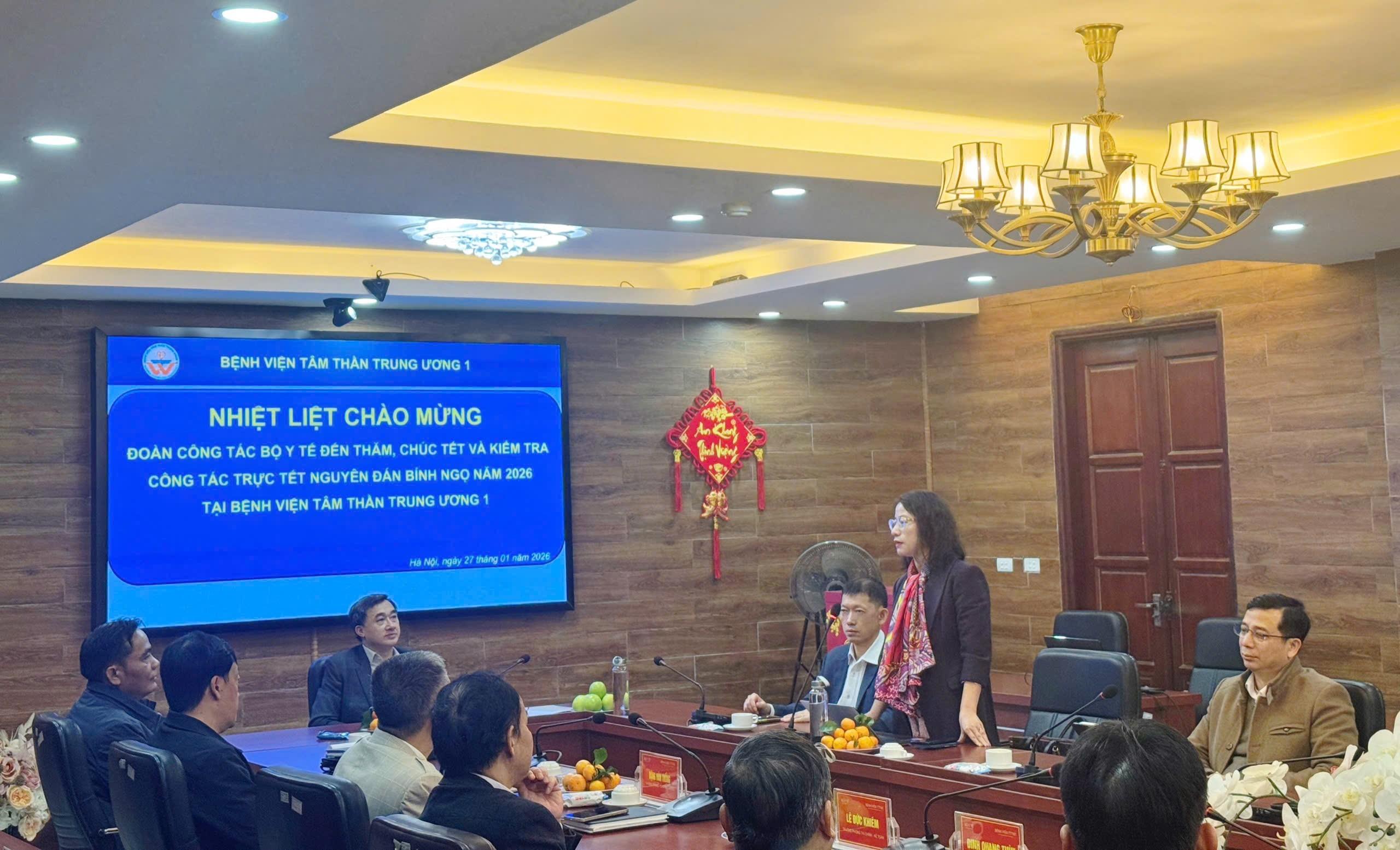 Nhân dịp chuẩn bị đón Xuân mới, Đoàn công tác Bộ Y tế đã trao quà và gửi lời chúc Tết tới tập thể cán bộ, viên chức, người lao động Bệnh viện Tâm thần Trung ương I, chúc toàn thể đội ngũ y tế cùng người bệnh và gia đình một năm mới sức khỏe, an khang, hạnh phúc, đồng thời tin tưởng Bệnh viện sẽ tiếp tục hoàn thành xuất sắc nhiệm vụ được giao.
