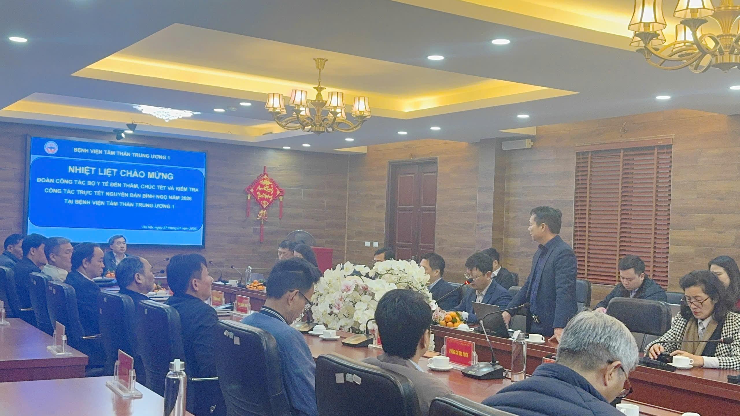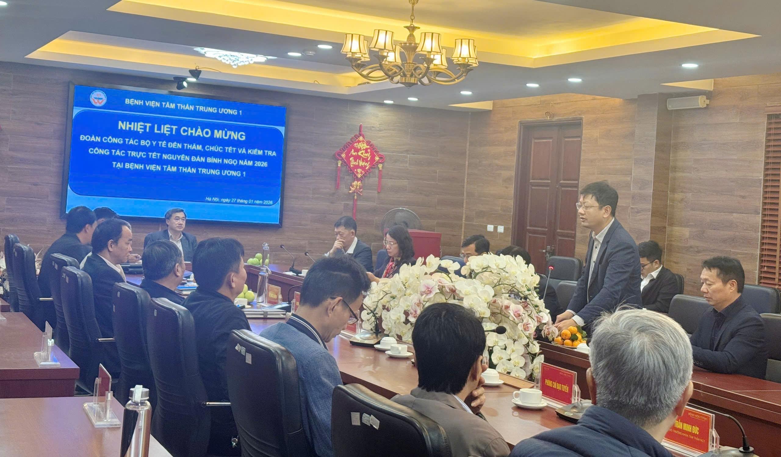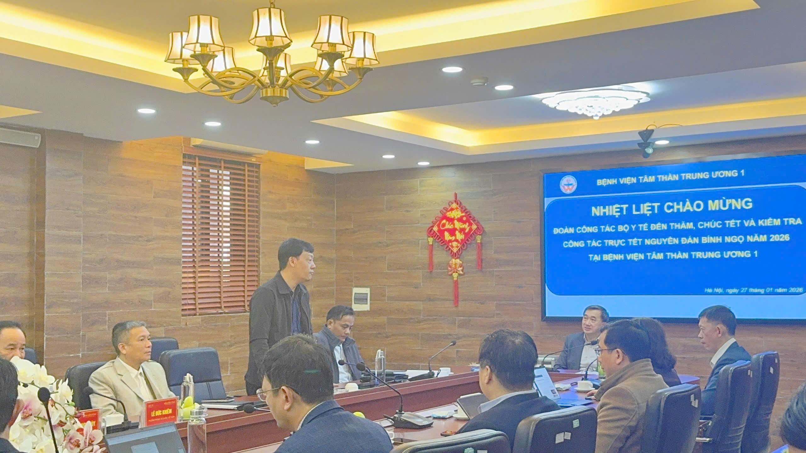 Trong không khí phấn khởi chuẩn bị đón Tết Nguyên đán Bính Ngọ năm 2026, sáng ngày 27/01/2026, Đoàn công tác của Bộ Y tế đã đến thăm, chúc Tết và kiểm tra công tác trực Tết tại Bệnh viện Tâm thần Trung ương 1.