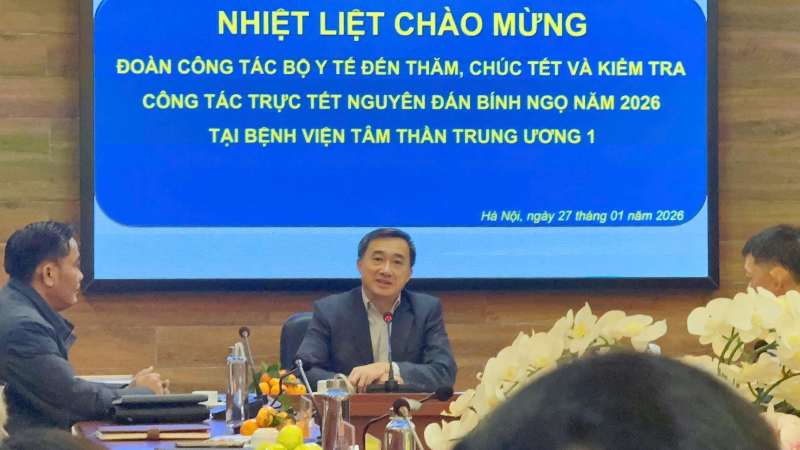 Phát biểu tại buổi làm việc, Thứ trưởng Bộ Y tế – GS.TS Trần Văn Thuấn biểu dương những nỗ lực của tập thể Bệnh viện Tâm thần Trung ương I trong thời gian qua, đồng thời đề nghị Bệnh viện tiếp tục phát huy tinh thần đoàn kết, chủ động, đảm bảo công tác chuyên môn, trực cấp cứu 24/24 giờ, không để xảy ra bị động, bất ngờ; chú trọng công tác chăm lo đời sống vật chất, tinh thần cho cán bộ, viên chức, người lao động đang làm nhiệm vụ trong những ngày Tết.