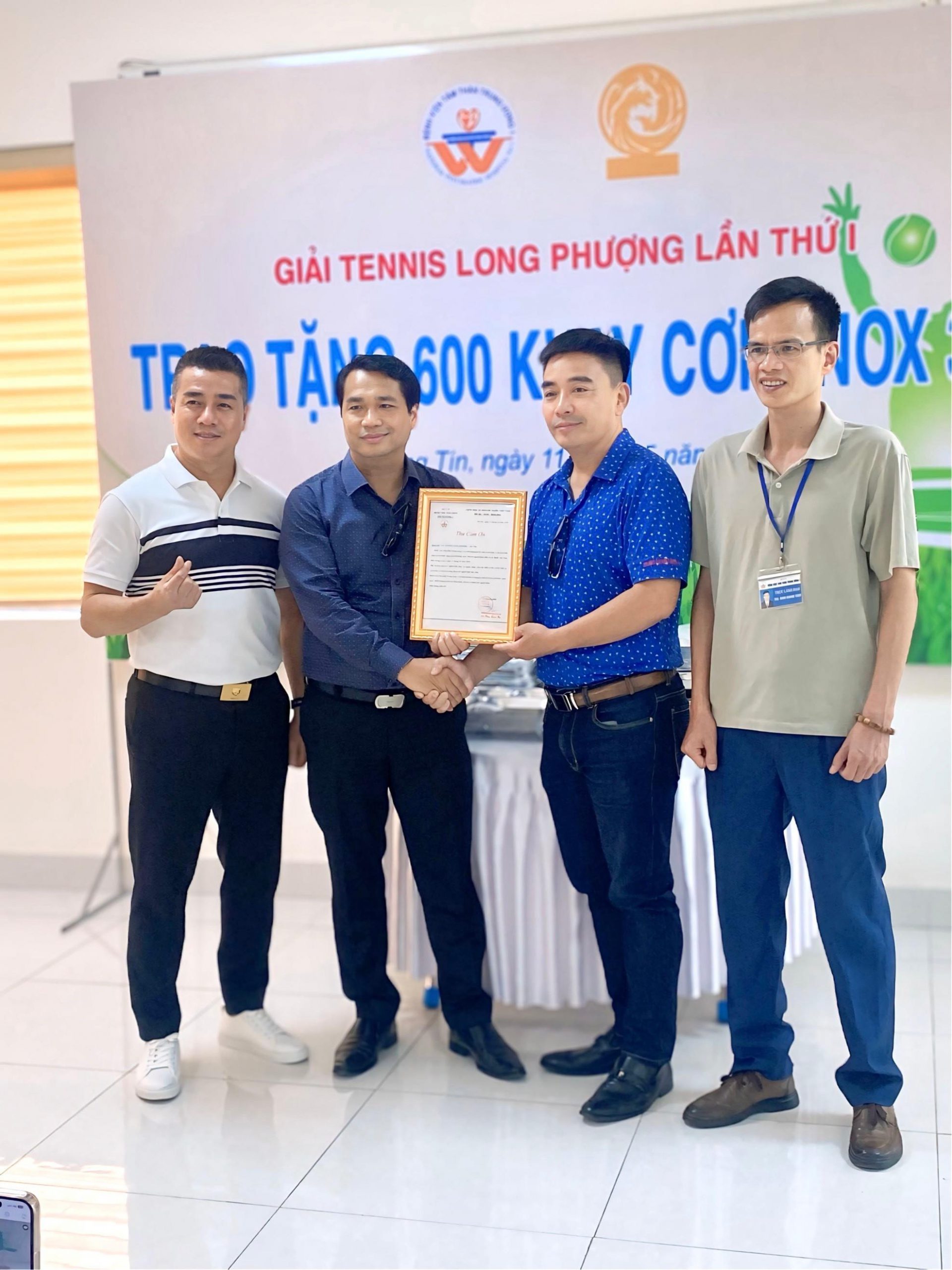 Hình ảnh: Đại diện Giải Tennis Long Phượng trao tặng 600 khay inox 304 cho Bệnh viện.