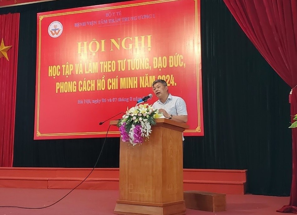 Sáng nay, ngày 06/08/2024, Bệnh viện Tâm thần Trung ương 1 đã tổ chức Hội nghị Học tập và làm theo tư tưởng, đạo đức, phong cách Hồ Chí Minh năm 2024.Về dự và chỉ đạo Hội nghị có các đồng chí trong Ban Chấp hành Đảng ủy, Ban Giám đốc, Ban Chấp hành Công đoàn Bệnh viện, các đồng chí Bí thư các chi bộ, Lãnh đạo các đơn vị khoa phòng và hơn 600 viên chức và người lao động thuộc Bệnh viện Tâm thần Trung ương 1.