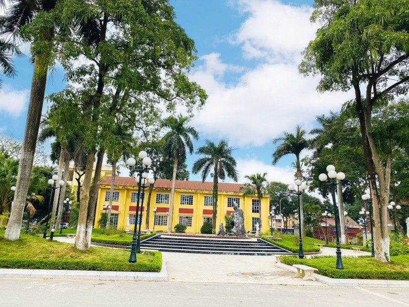 Khuôn viên bệnh viện được trồng nhiều cây xanh và có ghế đá để bệnh nhân ngồi nghỉ ngơi, thư giãn.