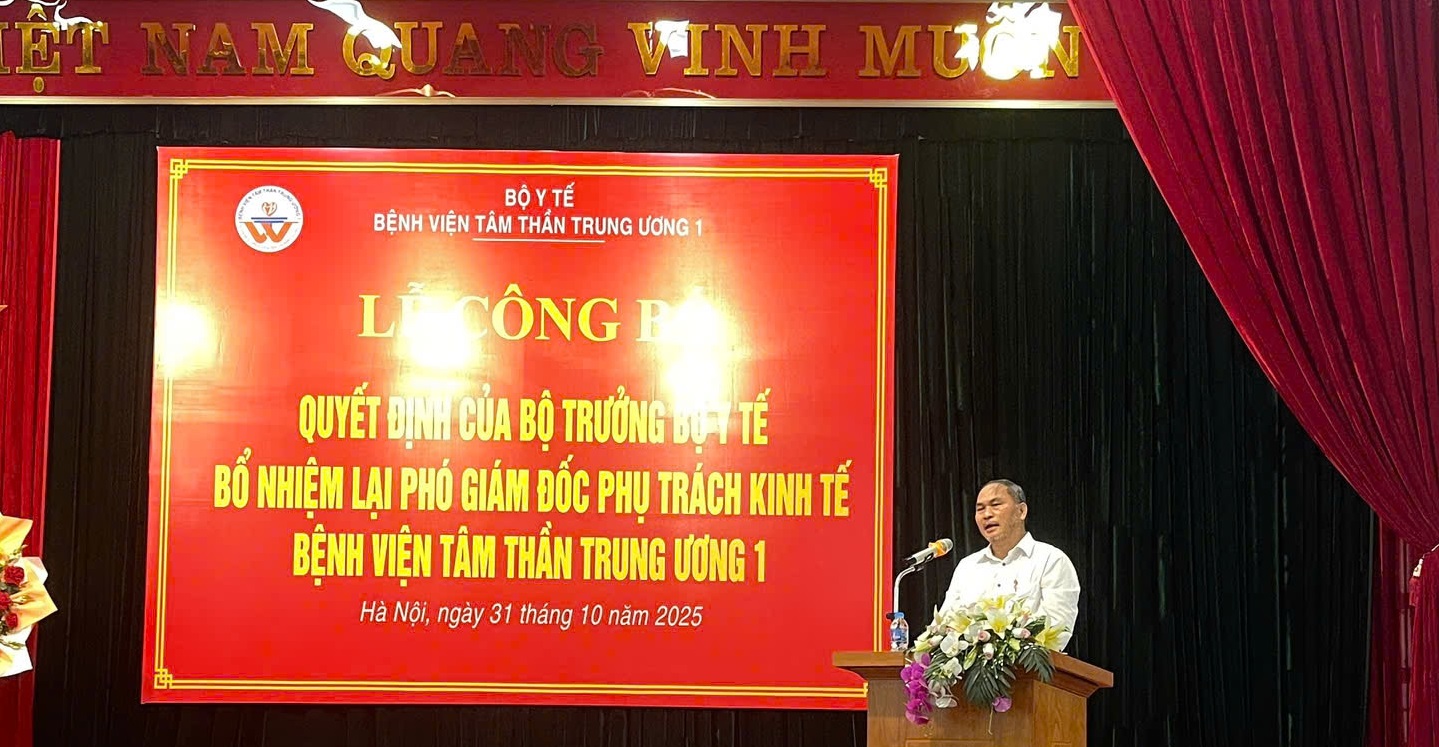 Sáng nay, ngày 31/10/2025, Bệnh viện Tâm thần Trung ương 1 đã long trọng tổ chức Lễ công bố Quyết định của Bộ trưởng Bộ Y tế về việc bổ nhiệm lại chức vụ Phó Giám đốc phụ trách kinh tế.
