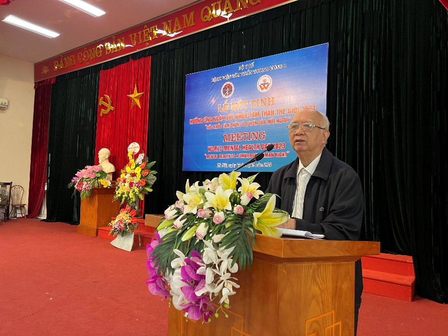 Tham dự lễ mít tinh có PGS.TS Trần Văn Cường – Thường vụ Tổng hội Y học Việt Nam; Chủ tịch danh dự hội Tâm thần học Việt Nam, Nguyên Giám đốc bệnh viện Tâm thần Trung ương; TS Lê Ngọc Tú – Bí thư Đảng bộ, Phó giám đốc bệnh viện; TS.BS Phùng Thanh Hải – Chủ tịch công đoàn bệnh viện; Các đồng chí trong Đảng uỷ; Các đồng chí trong Ban giám đốc bệnh viện; Lãnh đạo các khoa, phòng, trung tâm và hơn 200 cán bộ viên chức trong bệnh viện.