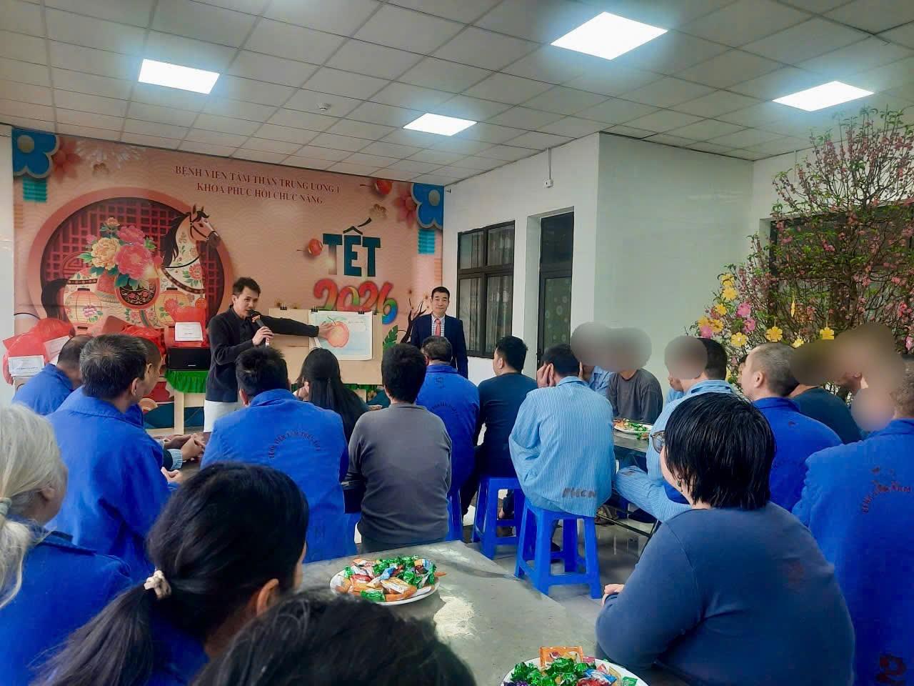 Nhân dịp Tết Nguyên đán Bính Ngọ 2026, được sự quan tâm, chỉ đạo sát sao của Ban Giám đốc Bệnh viện Tâm thần Trung ương 1, Khoa Phục hồi chức năng đã phối hợp cùng với các khoa/phòng, tổ chức chuỗi hoạt động vui chơi, văn nghệ mừng xuân dành cho người bệnh đang điều trị nội trú tại Bệnh viện.