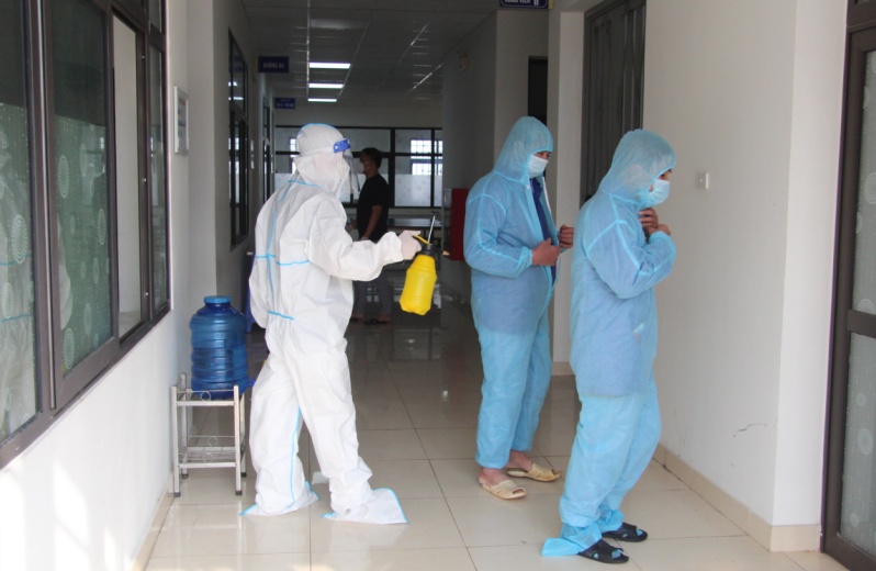 Ảnh: Nhân viên khử khuẩn cho bệnh nhân nhiễm Sars-Covi-2 từ khoa khác chuyển tới