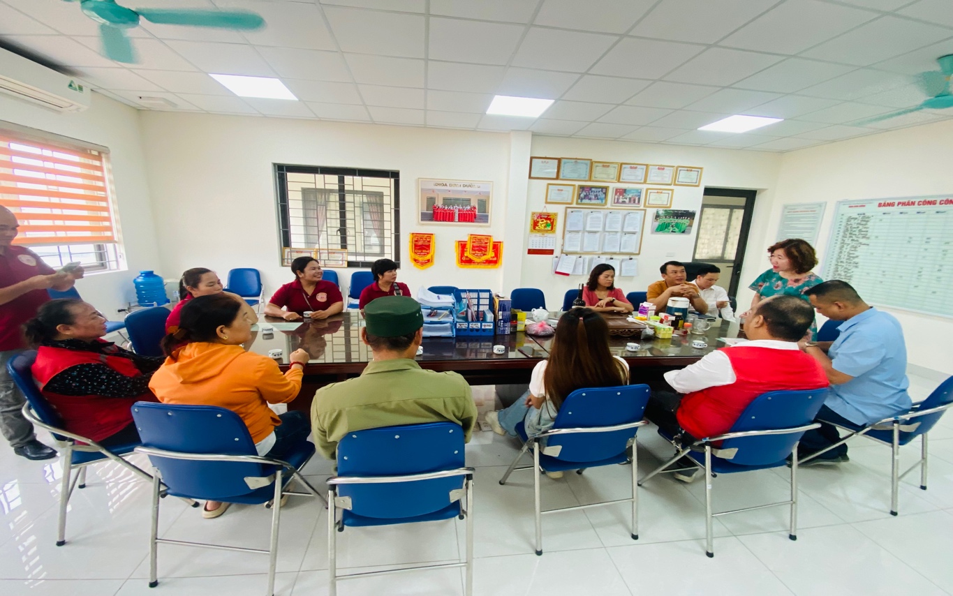 Hình ảnh Phòng Công tác xã hội chia sẻ, trò chuyện cũng như gửi lời cảm ơn tới các thành viên trong Đoàn từ thiện.